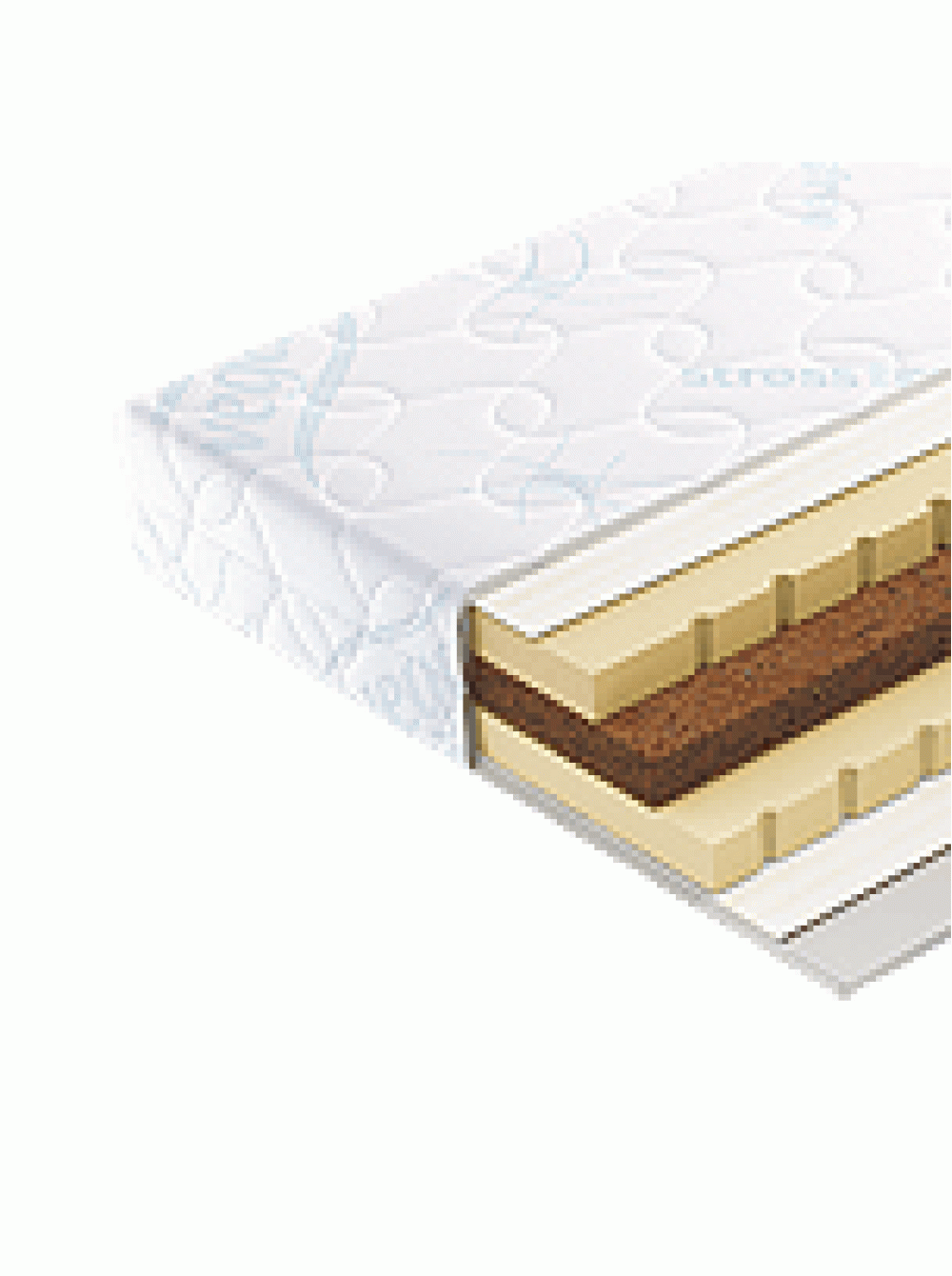 Наматрасник из двух слоев эластичного латекса и слоя кокосовой койры. Предназначен для увеличения высоты постели.